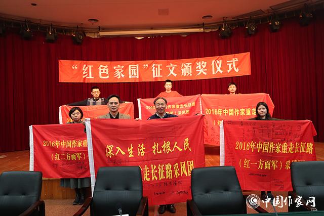 由人民日报社与中国作家协会联合主办的“红色家园”征文优秀作品奖于2017年2月17日评选揭晓,评委从发表作品中共评选出获奖作品10篇。获奖篇目按得票数目顺序(相同票数作品按发表时间先后顺序)公布如下: