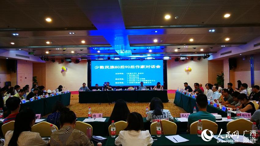 本次对话会由《民族文学》杂志社、广西民族大学、广西作家协会主办,广西民族大学文学院、广西民族大学文学影视创作中心承办。来自蒙古、回、藏、苗、彝、壮、布依、满、白、土家、哈萨克、黎、佤、畲、东乡、达斡尔、羌、仡佬等18个民族的青年作家参会。他们当中既有较早亮相于文坛、备受关注的鲍尔金娜、陈克海、包倬、何永飞、朝颜、向迅、羌人六、晶达、苏笑嫣等,也有近两年涌现的、具备一定创作潜质的新秀连亭、丁颜、宋阿曼、阿依努尔·吐马尔别克、祁十木等。