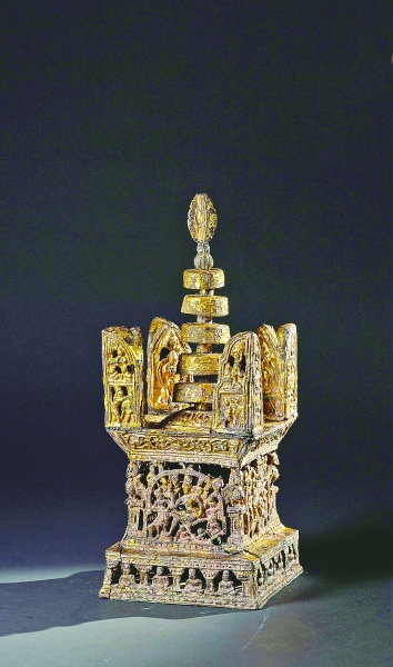 上海青浦青龙镇遗址出土的铅贴金阿育王塔 资料图片