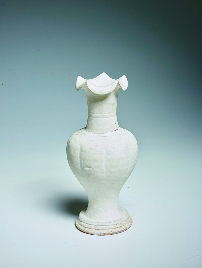 山西河津固镇宋金瓷窑址出土的素烧花口长颈瓶 资料图片
