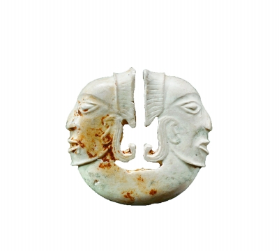湖北天门石家河遗址出土的连体双人玉玦 资料图片