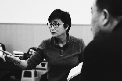 陈洁导演在话剧《烟草花》排练中王楚漪摄