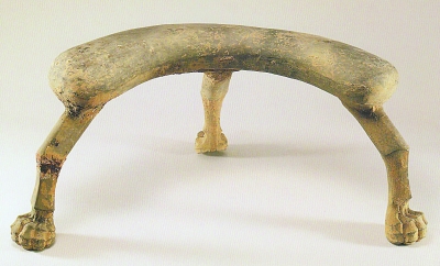 东晋南朝,曲凭几流行一时,但考古所见主要是作为随葬明器的陶凭几。南京象山琅琊王氏家族墓中,一件陶质曲凭几(下图)安放在棺床前的陶榻上,虽然几筵空置,却令人联想到几乎是同时期远在甘肃酒泉的墓葬壁画中,墓主人褒衣博带、凭几闲坐的图景。
