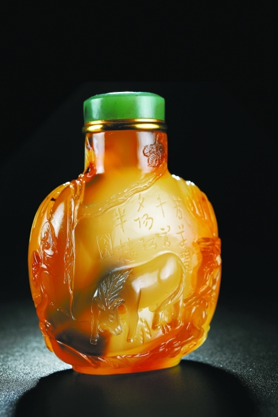 中鸿信春拍首次推出“如熏”清代鼻烟壶专场,按照装饰纹样推出溯源、化物、祥瑞、千颜、刻画、归属六个专题板块,共呈现各式鼻烟壶八十余件。鼻烟壶的材质、工艺颇具特色,囊括了山东博山的料器、广州的牙器珐琅、苏作的玉石玛瑙、扬州的套料雕漆、景德镇的瓷器等。清宫造办处的珐琅作、玉作、玻璃厂、牙作、漆作都成为鼻烟壶的制作中心。鼻烟壶丰富的材质、精湛的工艺,浓缩了中国传统工艺美术的精髓。