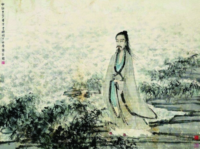 端午节的发端与楚文化紧密相连。楚文化有着一种神秘的气氛,巫山云梦,幽谷茂林,让人们多一分神思仙念。民俗端午节是为了纪念伟大的爱国诗人屈原,艺术史上也留下很多以屈原为题材的经典画作。在文人画家的视野中,屈原是忠君爱国的典范。在明代画家朱约佶的笔下,岩下仰天而坐的屈原傲骨临风,摆脱了儒家对屈原的“夫子”化的诠释;近代画家傅抱石笔下,披头散发的屈原望向滔滔江水,悲愤之情油然而生,江岸的杂草荒芜、远景的水天苍茫,不免让人诵出《天问》的苍凉歌调;当代画家王西京笔下的屈原,有了更明确的风骨格调,大胆洒脱的勾线与明快清晰的留白,彰显了中国人物画的精湛技艺以及笔墨黑白的独特魅力。这些画充分体现了士人风骨与悲愤情怀,铁骨铮铮的端午粽色渗透着对屈原精神大美至颂的祭拜。