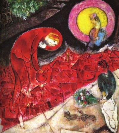 马克·夏加尔的《红色的屋顶》(局部)