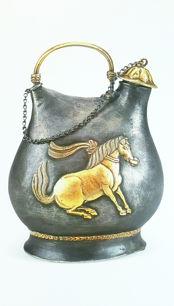 图为陕西历史博物馆收藏的唐舞马衔杯银壶