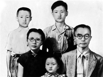 1946年,朱自清夫妇与子女的合影,后排右一为朱乔森。