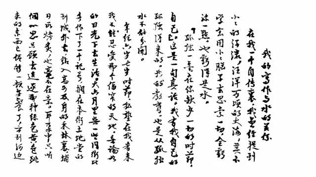 沈从文《写作、水关系》手迹。