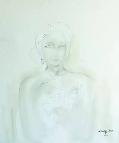 这幅作品色彩非常单纯,近乎模糊了油画与素描之间的界线,寥寥数笔,终成杰作。幸亏当时这幅作品没有被作者涂掉,让我们能够看到张洁内心中真实的柔软之处。