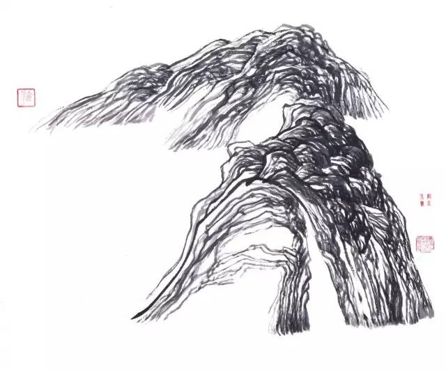 西川 《山巅·001》 纸本水墨,68cm×53cm 2017年