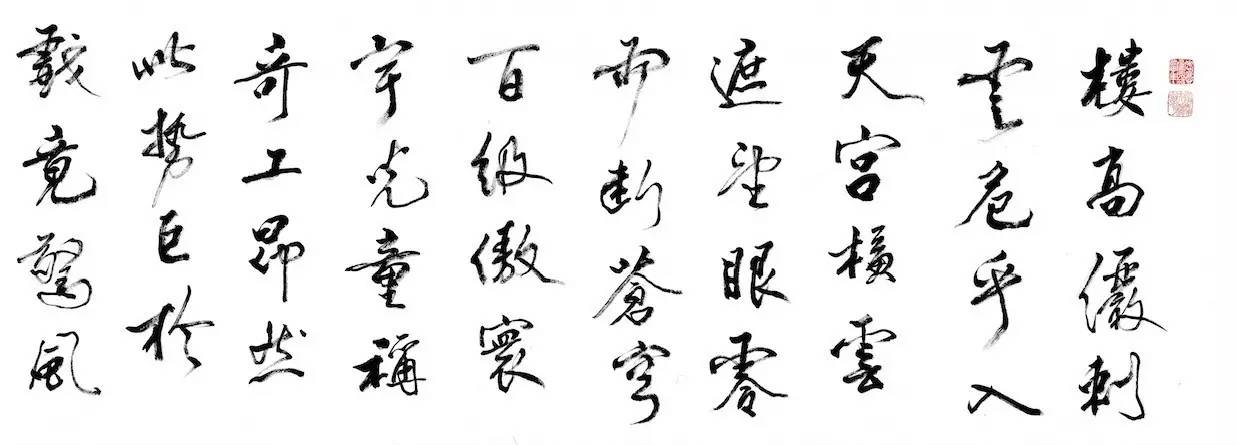 张大春 《行书自作登楼歌卷》(局部) 纸本水墨,15m 2017年