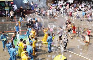 6月27日,第三届“泼水迎夏,幸福一生”2017北京呀路古热带植物园泼水季活动在北京大兴区启动。上千名游客泼水狂欢、互相祝福,共同体验傣族泼水风情。