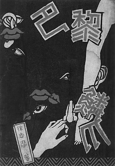象征主义与唯美主义的艺术思潮在20世纪初的上海曾引起很大反响,闻一多、邵洵美、叶灵凤、李金发等人在文学创作以及相伴而生的书籍装帧、插图设计等领域进行了本土化的实践。闻一多也在书籍设计上多有佳构,从他早年给《清华年刊》画的黑白插画中可见英国艺术家比亚兹莱对当时文艺界的广泛影响。闻一多将他对黑色的偏爱融入书籍与插画设计之中,多表现出强烈的对比关系。他自己的诗集《死水》便采用黑色封面。据闻立鹏回忆,“封面与封底选用了不发光的黑色重磅纸,书面上方三分之二处贴上小小的金色签条,书写着书名与作者。整部书籍以重磅厚纸印制,书页以浓黑的油墨印刷”;闻一多为徐志摩的《巴黎的鳞爪》设计封面,也以黑色作底,将红唇、眼睛、女性腿部特写等图形以拼贴的方式点缀于浓黑底色之上,以呼应“鳞爪”之书名,生动地表现巴黎留给中国诗人的印象:摩登都市中诱惑与危险并存。1931年为徐志摩诗集《猛虎集》设计封面,采用棕黄底色,用简朴遒劲的写意横线铺排出虎皮斑纹的苍莽意象,将中国笔墨与现代主义融为一体。闻一多认为封面设计应与“本书内容有连属的或象征的意义”,从他的设计中可见这一理念的亲身实践。