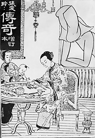 张爱玲也曾参与了自己小说集的封面和插画设计,从中既能窥见当时上海商业美术对这位女作家的影响,又展现了其独特的女性气质。张爱玲在《天才梦》中谈到自己对色彩、音符和字眼极度敏感,她为《传奇》第一版封面选用最喜爱的蓝绿色底子,书名与作者名则用黑色隶书字,在书摊上有闹中取静的震慑之感,她在《〈传奇〉再版序》中写道:“我要用我最喜欢的蓝绿的封面给报摊子上开一扇夜蓝的小窗户,人们可以在窗口看月亮,看热闹。”再版则选用好友炎樱的草稿临摹成封面,并以“古绸缎上盘了深色云头”“黑压压涌起了一个潮头”以及用月亮、玉环等意象来表现书中的人物关系。《传奇》出增订本时又请炎樱设计了新封面,张爱玲借用晚清画报中的仕女图来表现日常化的传统女性生活,右上角突兀地以简线笔法涂绘一个现代女性鬼魂般的侧影,向下张望的姿态反映现代目光对传统女性生活的好奇与窥视,正如张爱玲的初版题记所说,“在传奇里寻找普通人,在普通人里寻找传奇”。