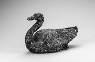 此秦代铜雁出土于距秦始皇陵园最远的一座陪葬坑,坑内有象征性河道,46件铜禽排列在河道两侧,其中铜鹤6件,铜天鹅20件,其他为鸿雁等禽类。