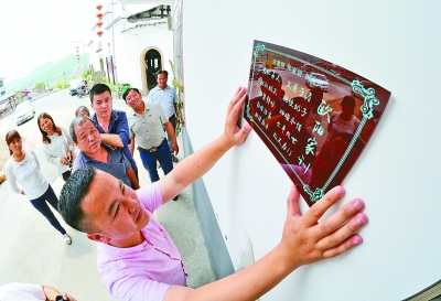 江西省铅山县,党员干部在村民家门口挂“家训”牌。丁铭华摄/光明图片