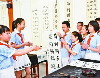 福州市琅岐实验小学,同学们在展示自己书写的名人家风家训。新华社发