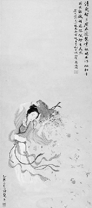 这些作品题材和艺术样式等可以划分为人物、花鸟、梅花(红梅、墨梅)、扇面、画稿等类,其中人物类包括观音、佛祖、达摩、长眉罗汉、洛神、天女、仕女等,其中以佛像、仕女、观音为多,分别为9幅、9幅、7幅;梅花的作品最多,约202幅,占馆藏其作品总数的近四分之三,其中著录为红梅的56幅,一幅扇面《红梅》,带绿梅,署“玉岱先生雅属”,一面字“溃春痕(九言诗)乙酉夏日玉岱仁兄清属陈敬弟”。一幅扇面《绿梅花》,署“丁亥仲秋云霞先生雅属”,一面空白。特别是扇面,计有79幅,存量数和画梅数都很可观。