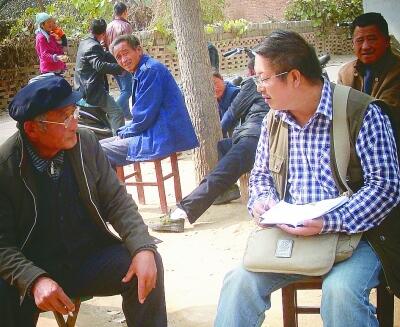 陈启文在黄河边的村庄采访。资料照片