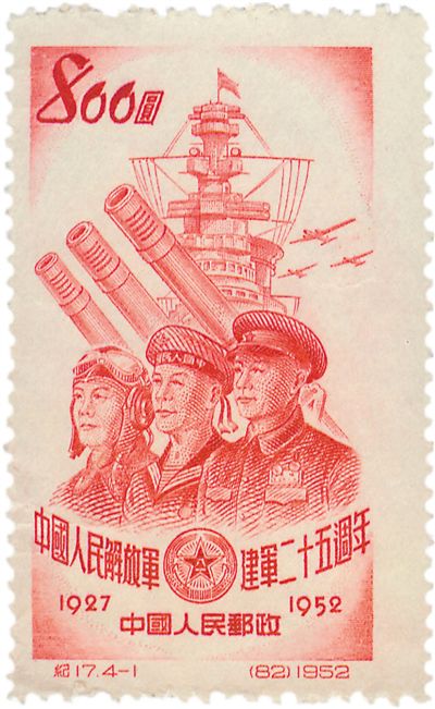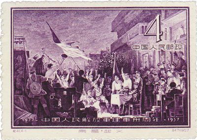 解放战争期间,人民军队以“中国人民解放军”的光荣称谓,所向披靡,解放全中国,完成了“南昌起义”所奠基的历史使命。仅华东人民邮政,1949年3月发行了江淮解放纪念邮票;5月发行了淮海战役胜利纪念邮票,以及南京、上海解放纪念邮票。