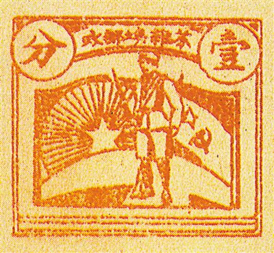 最早出现在邮票上的人民军队形象,是对第一次国内革命战争时期的红军战士的刻画——1932年,中华苏维埃共和国邮政发行第一套邮票,7枚邮图上有题为“战士图”和“冲锋图”的图案。红军战士持枪(图②)与冲锋的形象,第一次出现在邮票上。这套邮票,在普通的白纸和报纸上,以石印版印制,票面粗糙,没有齿孔,却是表现人民军队形象最早的邮票。1990年,在“中国人民革命战争时期邮票发行60周年”纪念邮票中,邮图利用“票中票”形式,让人们再次领略了红军战士的风采。