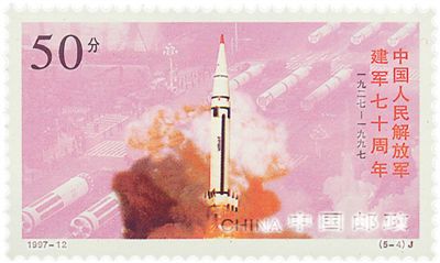 1997年发行的建军纪念邮票,以五个篇幅讴歌了军队的现代化建设(其一见图⑦)。在即将进入新世纪,香港刚刚回归祖国之时,邮图以简洁直观的真实画面,再现了经历了70春秋的砥砺前行,走向现代化和已经现代化的这支伟大的武装力量。