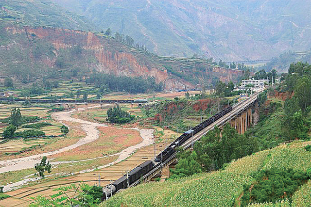 站在宏伟的瀑布沟电站大坝放眼望去,目下蜿蜒的大渡河,好似一条轻柔的飘带,随风飘动在峡谷中。两岸怪石嶙峋的崖壁,狰狞地对峙着。忽见一列火车若隐若现地穿行于绝壁驶来。只有置身其外,才能如此震撼地领略到成昆铁路奇绝壮美的风姿。为修建这条西南大动脉,30万铁道兵以大无畏的牺牲精神,用简陋的工具奋战在如此复杂险恶的地质结构中,不可思议地修筑出了如诗如画般的成昆铁路。这条铁路建成通车已47年,时至今日成昆铁路建设者所创造的奇迹和不朽精神,依然深刻地感召着我们。改革开放唤醒了中国,这片古老的土地立刻沸腾起来,仅仅30多年时间,神州大地血脉偾张般奔流起了八纵八横的铁路大动脉,中国再次充溢起了青春活力,风驰电掣的列车彻底改变着中国的交通历史。