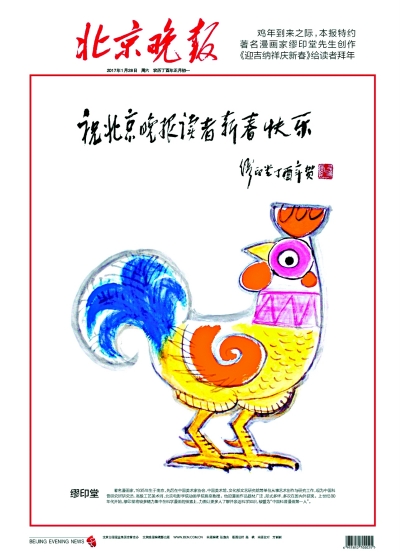 被誉为“科普漫画第一人”的著名漫画家缪印堂于7月31日晚9时去世,享年82岁,缪印堂曾说:“假如有来世的话,我会再选择漫画这条人生之路。”2017年丁酉年大年初一北京晚报彩印封套的鸡年生肖画,就是缪印堂先生今年1月初专门为晚报创作的。