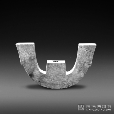 良渚遗址出土的玉质三叉形器,出土时位于墓主人头部,应属冠帽上的饰物。 (图片来源于良渚博物院)