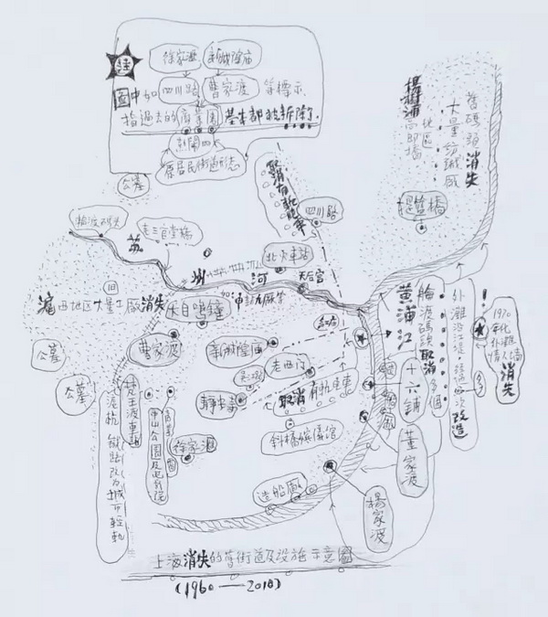 记忆中老上海的街坊里弄、屋棱瓦片,黄浦江上气鸣声声,江鸥波上栖,旧货商店、国泰电影院、城市的版图、街角建筑的变迁……在他笔下凝固成栩栩如生的画面。没有经过专业绘画训练,没有技巧的束缚,笔触反而自由、随性、轻松,呈现一种看似未完成的状态,像画家的创作手稿,笔尖行走的方向、缓急、节奏,清晰可见。