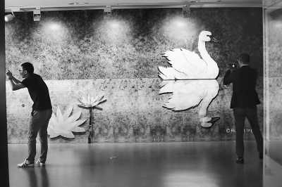 小观众吴为之的妈妈说,平日孩子看绘本很多,她发现自己熟悉的作者不少都在展览中出现,开心极了。“妈妈,这个我看过。”吴为之指着安野光雅的作品说。她觉得看画展和看书不一样,有的钢笔画线条密密麻麻,特别有趣。小观众瞿文昭和司嘉文结伴而来,她们都偏爱杜桑·凯利的《野天鹅》,“色彩好看,特别细致”。而年轻的杜先生则说,看了展览,真想回到过去,翻翻小时候看过的书。