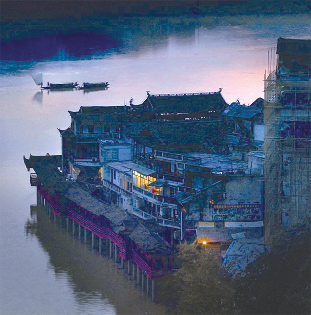 如果不是工业文明在湘西的跨越式发展,或许王村的后人们今天还会生活在他们祖辈为之骄傲的酉水王国里,重复着古老的宿命。然而,直到1986年,一个名叫谢晋的电影艺术家和他的剧组的到来,才改变了这颗失落在酉水之滨的明珠的命运。随着电影《芙蓉镇》的问世,沉寂多年的王村再次声名鹊起,然而这一次王村颇显尴尬,它的本名正被声名远扬的“芙蓉镇”所替代,而拥有千年历史的“王村”却无奈地闪在了盛开的芙蓉花之后。