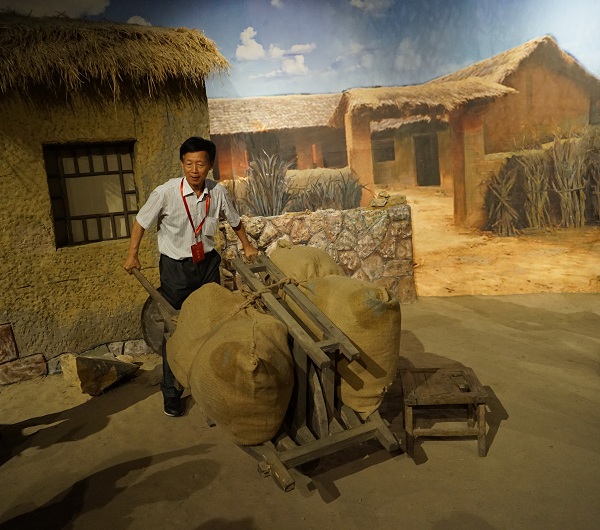 陈毅在总结淮海战役胜利时说:“淮海战役的胜利,是人民群众用小车推出来的。” 11日,采访团来到徐州邳州的碾庄圩战斗纪念馆,馆内墙壁上“最后一口粮做军粮,最后一块布做军装,最后一个儿子送战场”几行字是当时百姓全民支前、全力支前的真实写照。采访团认真阅读了“邵大妈送儿上战场”、“血染的人桥”、“邹允年舍命救伤员”等历史资料,深受震撼。团员张柯表示,只有站在这里,看着真实的资料,呼吸着战地的空气,想着他们中的许多人就埋在这里,才能产生最真切的创作冲动。书写历史必须身临其境,否则写出来的就是假大空的东西。