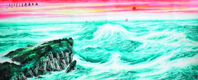 方寸之间,卷起滔天巨浪;心潮澎湃,顿生万丈豪情。周智慧的大海作品,水墨酣畅淋漓,气贯长虹。大海是他战斗和生活过的地方,大海寄托了他人生的梦想和追求,他之所以能画出海的壮丽、海的魂魄、海的情怀就不足为奇了。