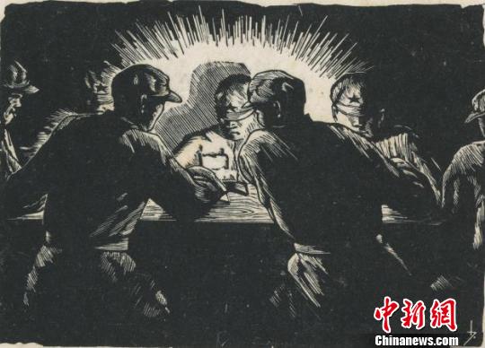李少言创作于1940年的木刻版画作品《学习》。 钟欣 摄