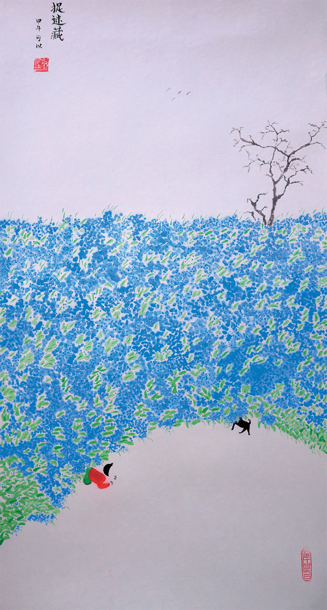 我的友人胡赳赳曾谈到艺术的初心与机心,对我而言,生活也是一样,初心入世,从未有过机心,倦于周旋人际,故难左右逢缘。我是个简单的人,也会永远简单下去,正如我在画册里写的,以拙朴面对圆滑,以简单应对复杂,人越老,心越赤。我画出了自己,那个画中没有长大的红衣绿裤女孩,依然天真、孤独、忧伤,不需要抚慰。回到初我、本我、真我,退避人群、流言、诽谤,我写作、画画,每多写一个人物,就多一个朋友;每多画一寸山水,就广一片天地。愿如此将逝去的故乡留在纸上天堂。