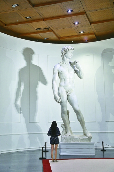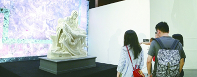 观众在现场参观米开朗基罗雕塑复刻作品。图片为本报记者 于园媛摄/光明图片