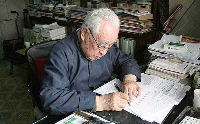 在北京入夏最热的那一天,收到胡可老人寄来他的新作《话剧的足迹》。看到他用的还是那种传统的大号牛皮纸信封,上面有我非常熟悉的工整苍劲的笔迹,完全不像是一位外出离不开拐杖,到了夜晚依靠吸氧才能入眠的老人所书写,而他这种严谨细致对待生活中每一个细节的认真态度,也是数十年如一日从未改变。这使我不由得又想起春天去家里拜访老人,他还在那间简陋且因藏书显得拥挤的书房里写作的情景,顿时有一种感动从我心底涌出。中国话剧已走过110年的艰辛历程,如今年近白寿仍在艺苑笔耕不辍的剧人,有谁能比胡可跋渉的里程更长,历经的风雨更多,创作的成果更为丰硕?无论怎样横竖比较,胡可都够得上中国话剧长路的开拓者和见证人的荣耀。正是怀着这样一种深深的崇敬,我倾心拜读他与共和国同行的“读剧札记”,去寻找他光荣而又漫长的坚实足迹。