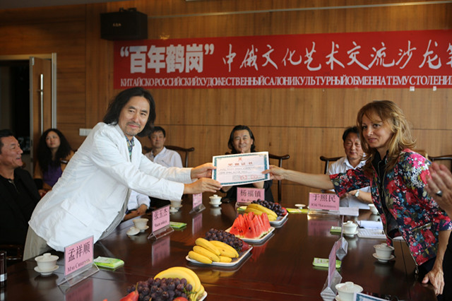 孟祥顺为俄罗斯画家颁发荣誉证书