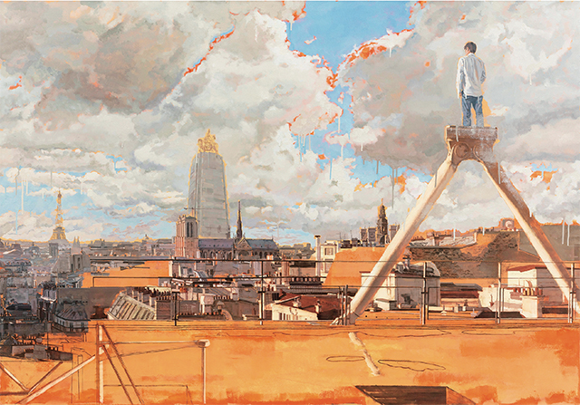 图为李卓的《巴黎的天空》(布面丙烯油画)