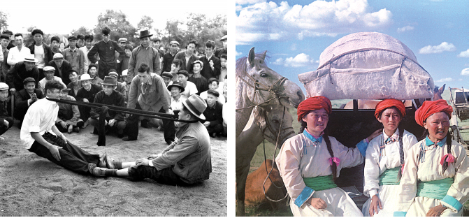 左图:草原英雄小姐妹(1964年)、右图:猎民新村(1956年)