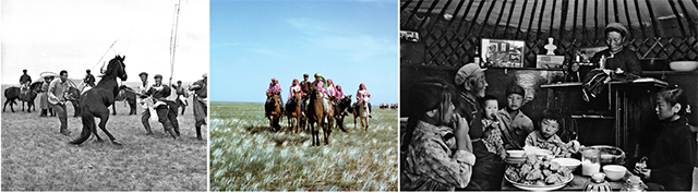 左:驯马(1978年)、中:初征赛场(1973年)、右:蒙古包托儿所(1969年)