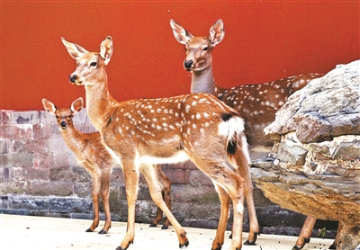 九只活泼可爱的梅花鹿昨天亮相故宫博物院慈宁宫花园后,立即吸引了大批粉丝。北京青年报记者获悉,9只梅花鹿是为配合下周即将开始的承德避暑山庄内野生梅花鹿及相关文物展,特意从避暑山庄调运至京,它们将在故宫生活至2018年2月底。