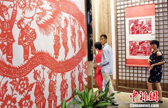 9月30日,喜迎“十九大”我们的节日——名家剪纸艺术作品联展在福州三坊七巷福建省海峡民间艺术馆开幕。 记者刘可耕 摄