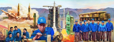 《大国工匠——徐立平》由来自清华大学美术学院的宋克和郑艺两位教授共同创作完成。画面色调明快,技师们工作时的严谨认真与工作后的欢声笑语在画面中交相呼应。画中徐立平手握的刻刀正是他自己研制的“立平刀”,这把小小的“立平刀”是技师们在平凡的岗位上对工匠精神的准确诠释。中国航天科技集团公司第四研究院7416厂发动机整形组组长、航天特级技师徐立平,从事航天发动机固体动力燃料药面微整形工作30年,凭着对事业的忠诚担当,他“在炸药堆里工作”却不畏危险、苦钻善学,练就了一手技艺绝活,多次出色完成各项艰险任务,以自己的实际行动书写了一名“大国工匠”精益求精、爱国奉献的壮丽篇章。两位艺术家在四月份接到创作任务后,便赶往西安感受徐立平的工作状态。“他很平实,话也不多,就是实实在在地干活。但最让人受感染的也正是他这种默默奉献的精神,他是既平凡又伟大的人。”徐立平给艺术家们留下了深刻印象,最终他们用整个暑期在借来的教室里完成了创作。