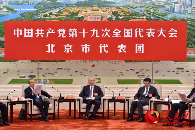 10月19日,出席中国共产党第十九次全国代表大会的北京代表团在北京人民大会堂讨论党的十九大报告,并对中外媒体开放。