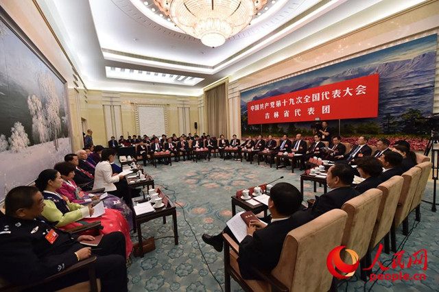 10月19日,出席中国共产党第十九次全国代表大会的吉林代表团在北京人民大会堂讨论党的十九大报告,并对中外媒体开放。
