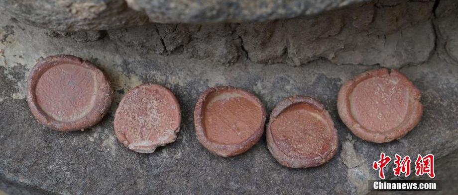 10月26日,从西藏自治区山南市文化局(市文物局)获悉,该单位与湖南省文物考古研究所组成的调查组发现“果拉康”遗址。遗存内壁画保存较完好,研究人员初步推测其形成于14世纪前后,距今约700年。图为遗址中的擦擦(小陶塑)。 中新社记者 贾英杰 摄