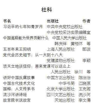 优秀畅销书榜分榜·2017年9月